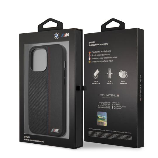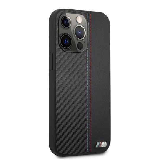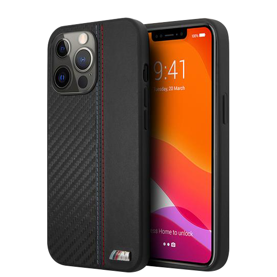 BMW M HC PU Carbon for iPhone 13 Pro Max Tricolor Stitch Black