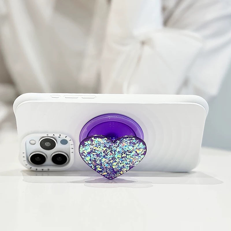 Popsnap Magnetic Phone Grip&Stand Iridescent Confetti Dreamy Heart Purple