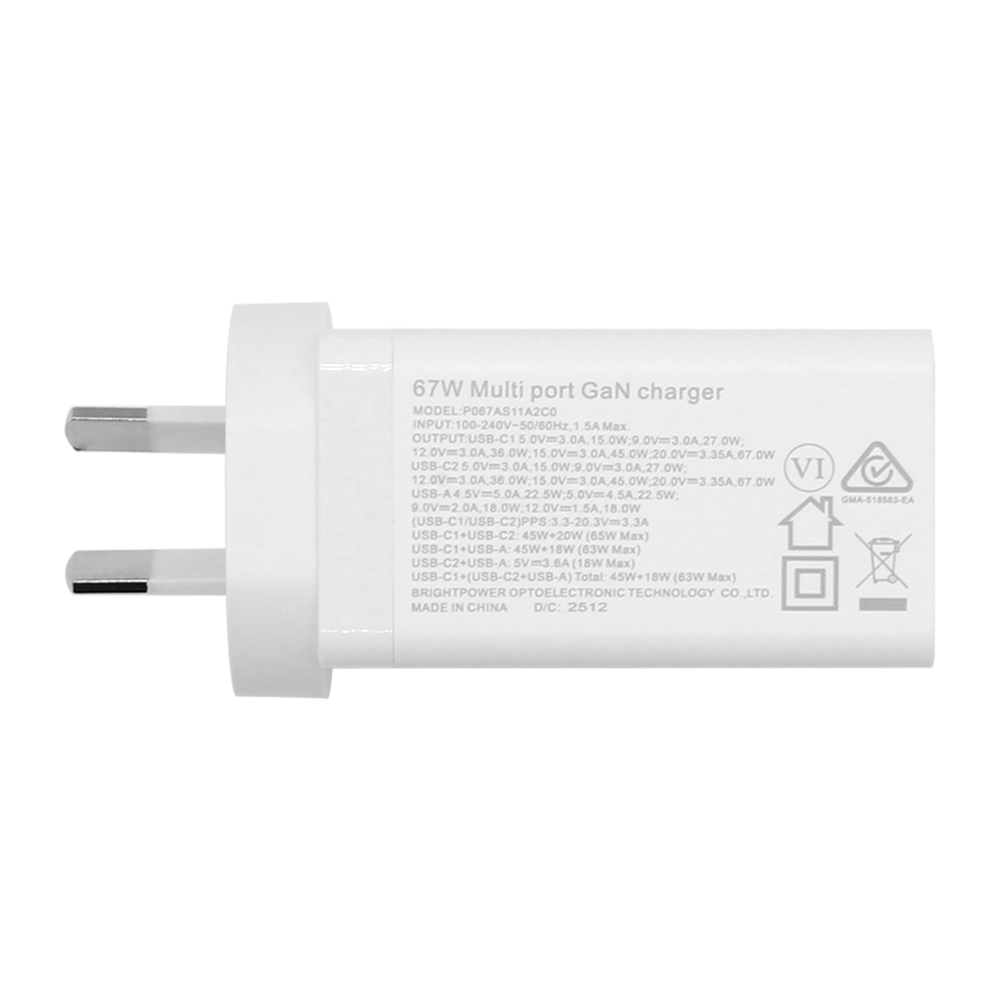 Wisecase 67W EE673OC Wall Charger with 3Ports( 2xUSB-C+USB-A) White